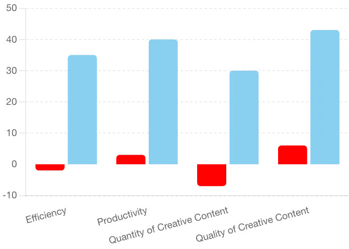 Results were comparing 2023 vs. 2024 Quantity of Creative and Quality of Creative Content— which both were up significantly in productivity and post performance.